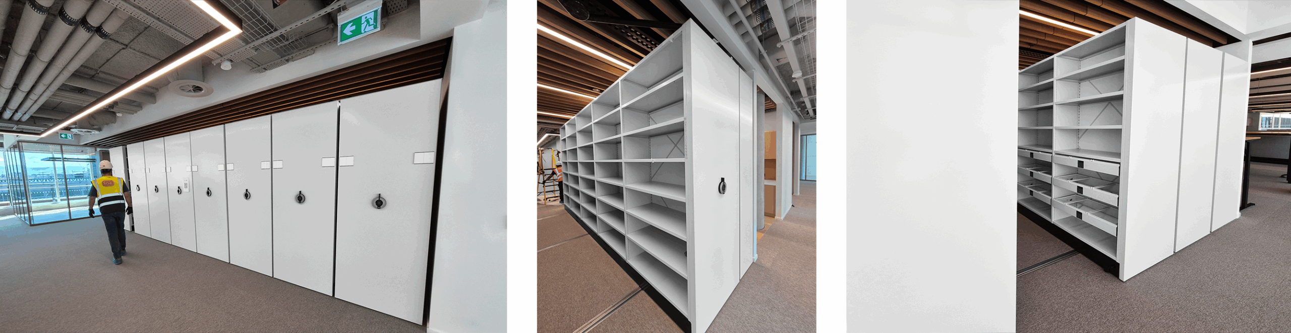 We successfully delivered complex, multi-phase mobile shelving solutions within high-specification commercial developments. Through close collaboration with main contractor John Sisk & Son and the multiple government offices occupying the space, we delivered a clean, efficient, and high-performing installation that seamlessly supports daily operations in one of Dublin’s most modern office environments.